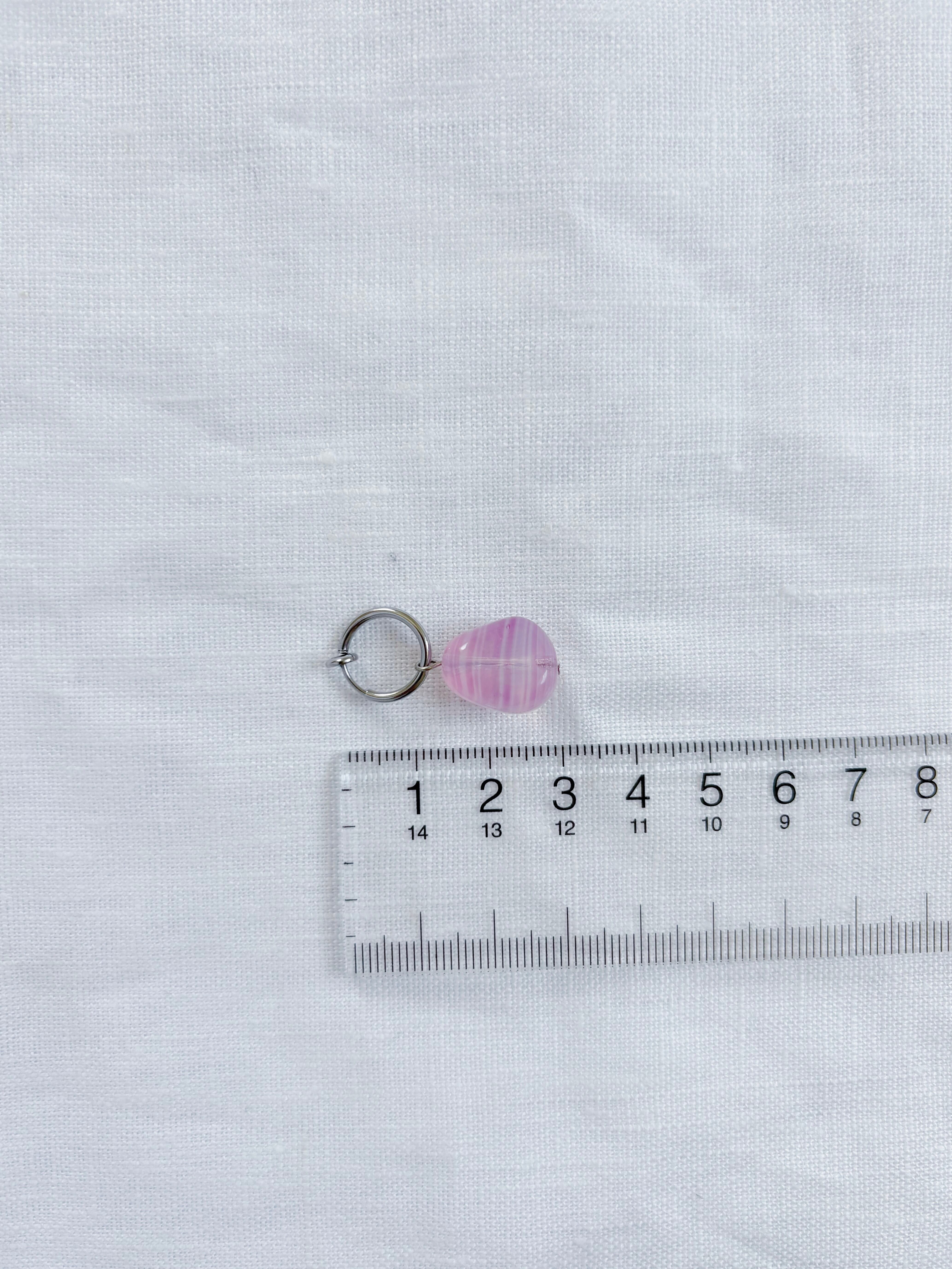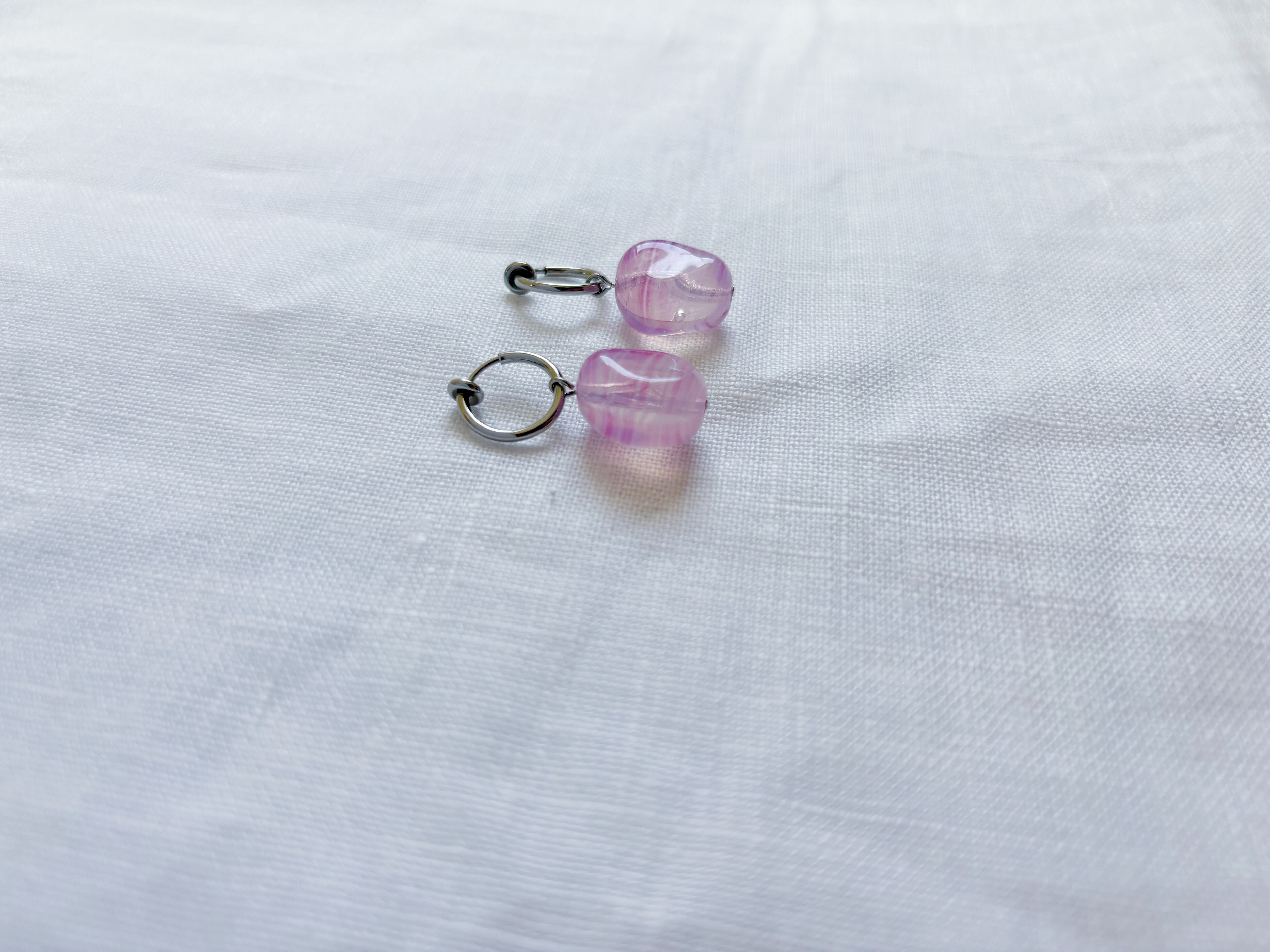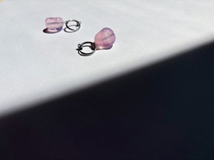 こちらは薄いピンクの繊細な線が印象的な、歪なガラスパーツを使ったイヤリングです。