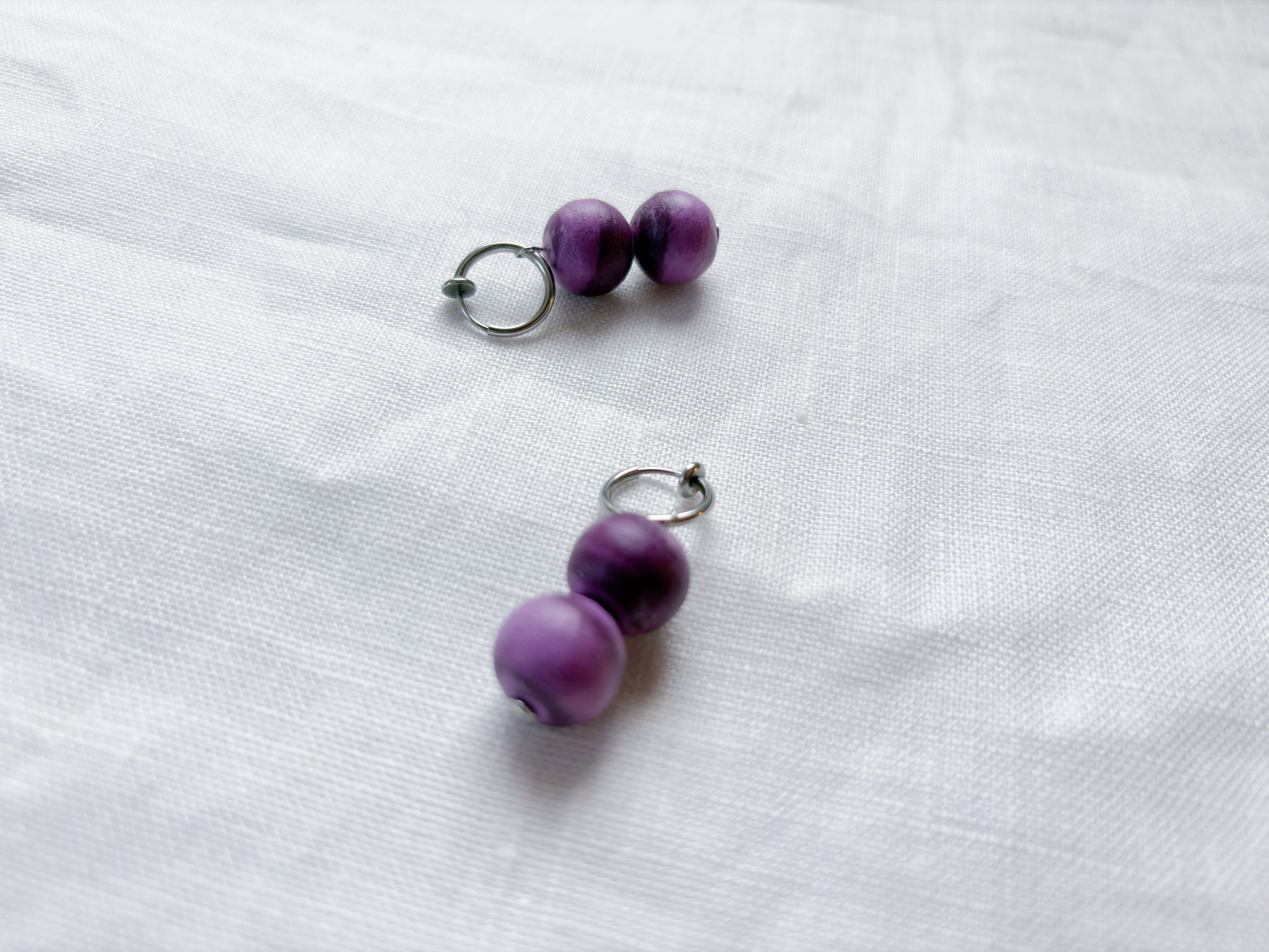 こちらは、和紙のようなもので付けられたパープルのマーブル柄が可愛いイヤリングです。