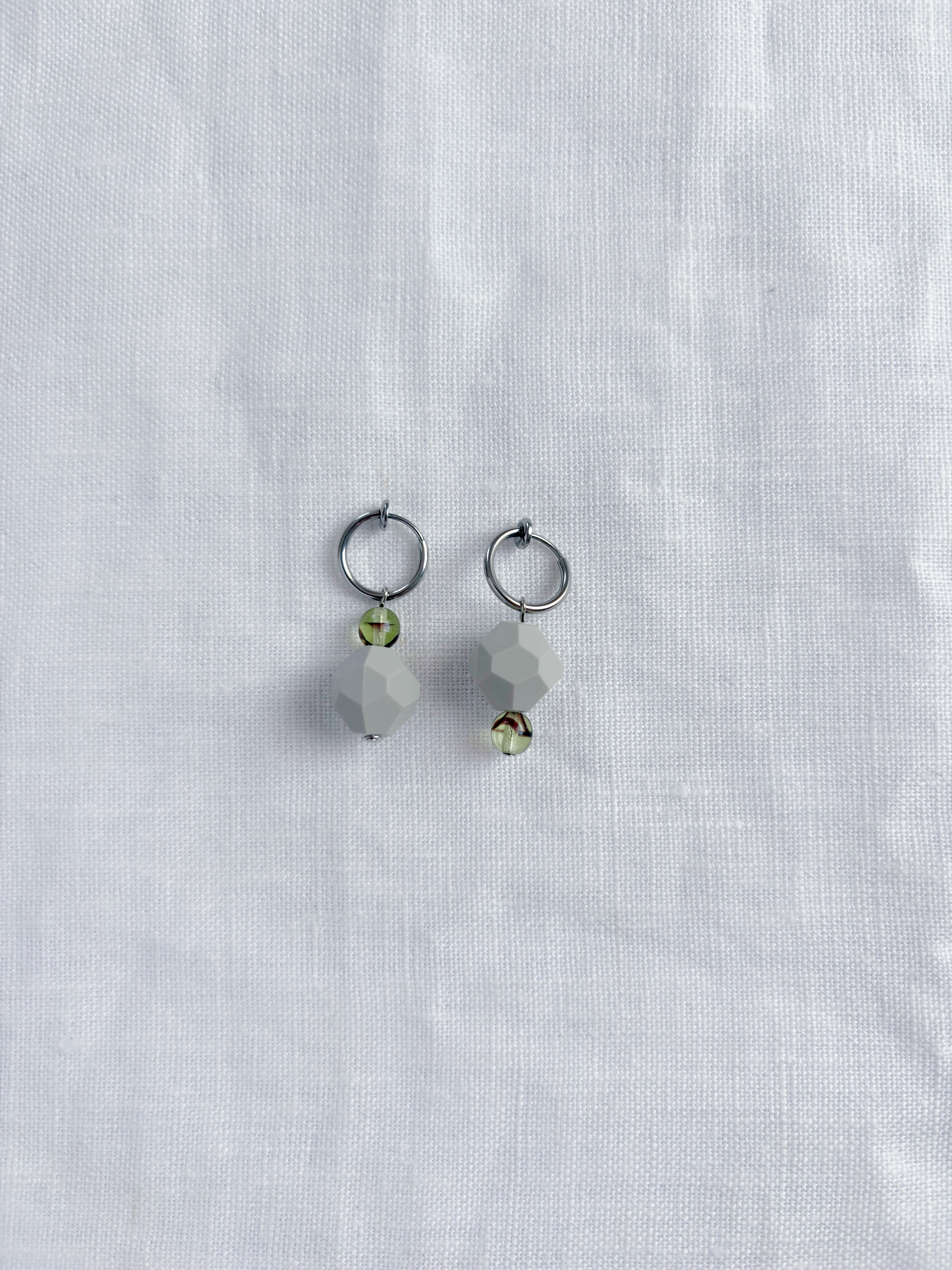 No.88 でも使用しているパーツと、コンクリートのようなグレーとベージュの間のような色の多面体パーツをちぐはぐに。