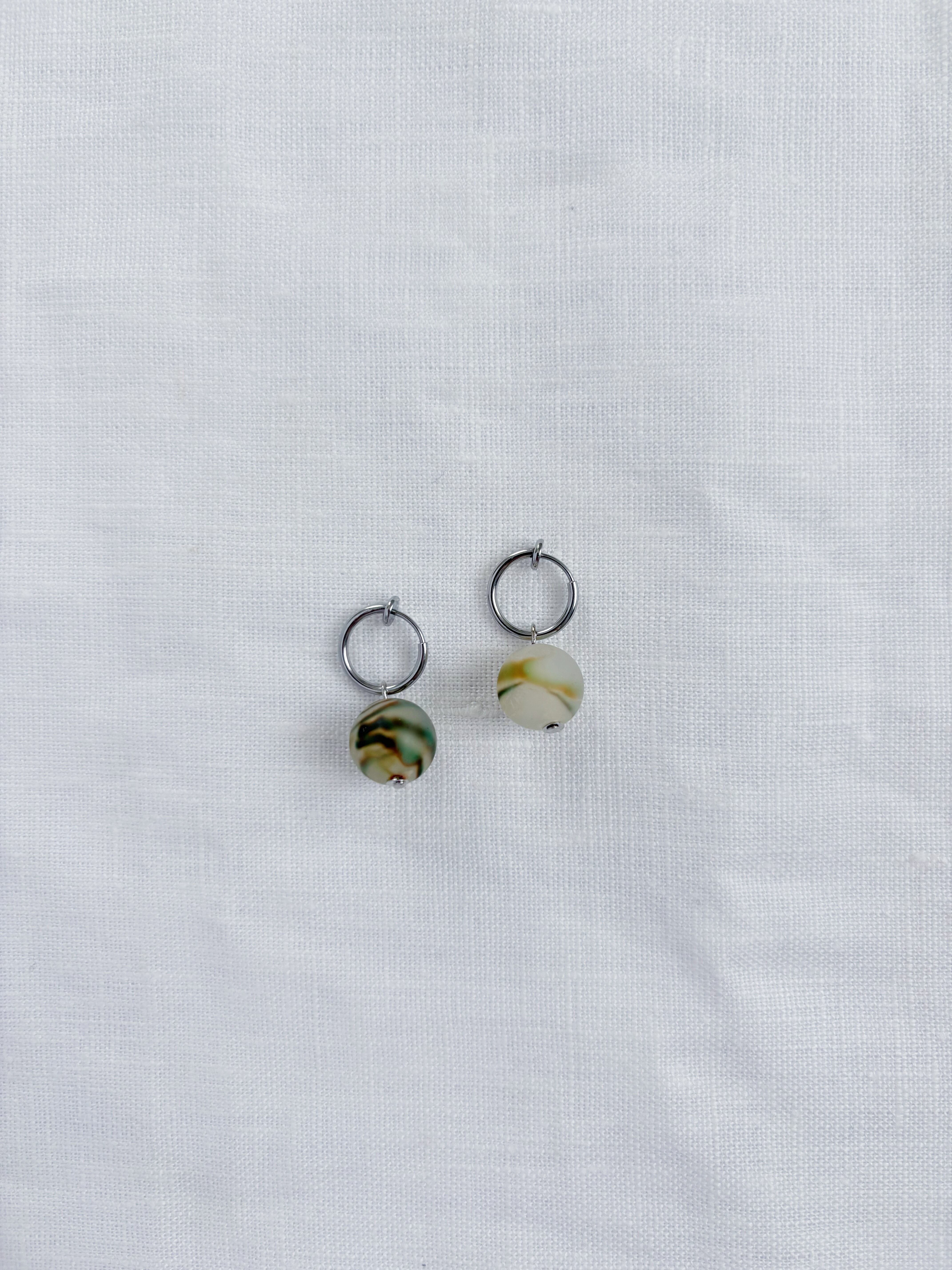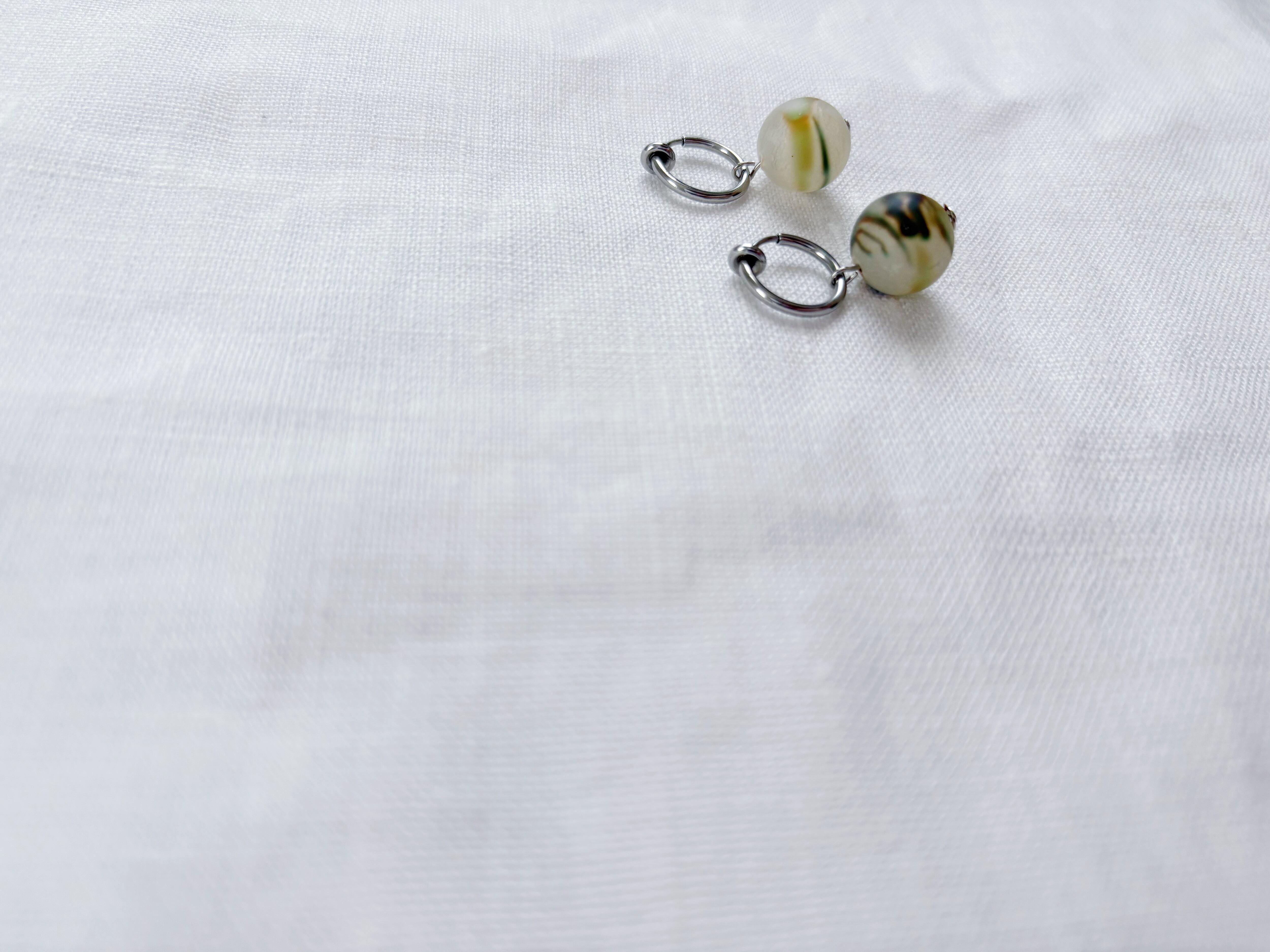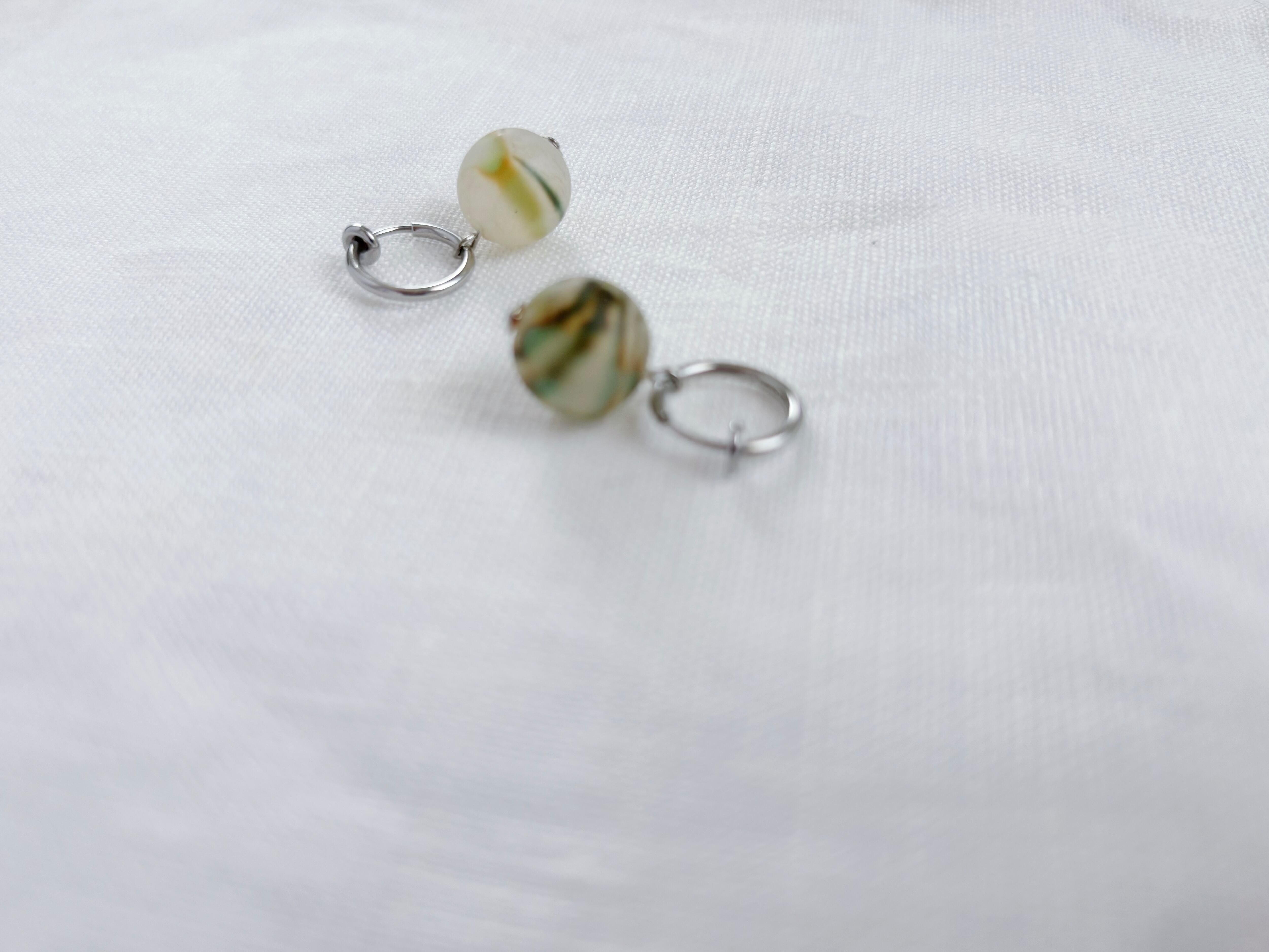 まるで石のようにマットな透明パーツに、自然の風景が映しとられているような不思議な柄。