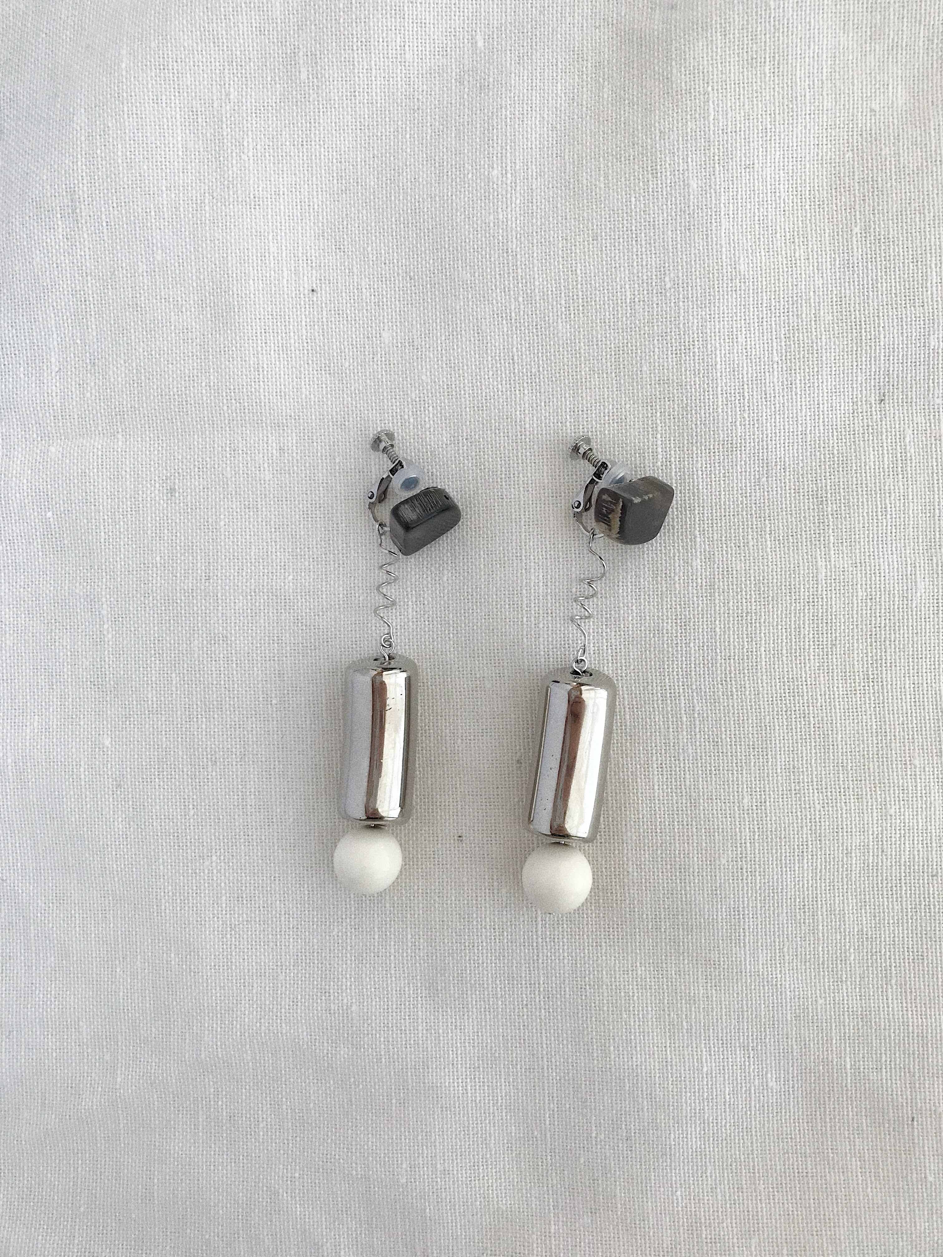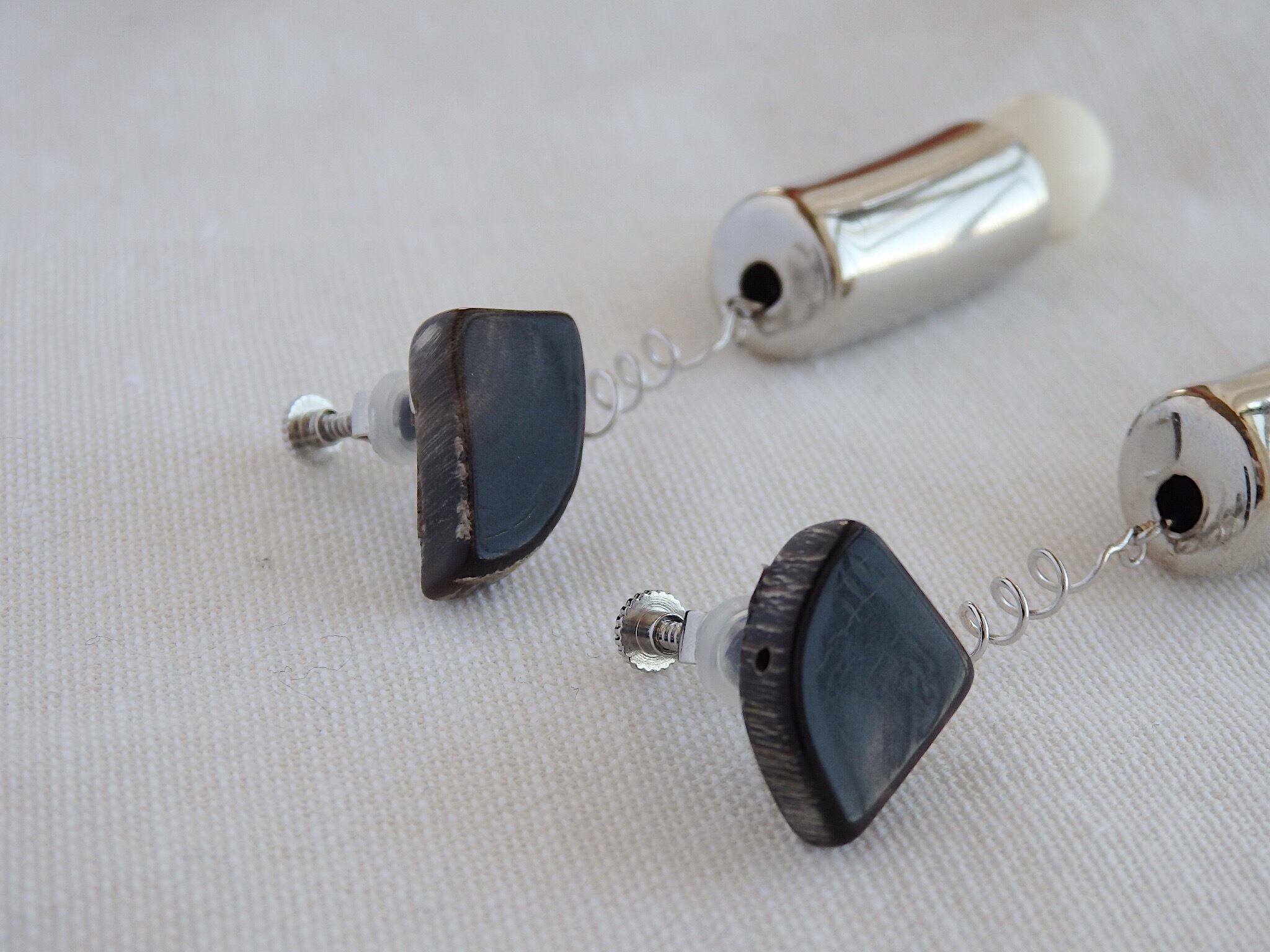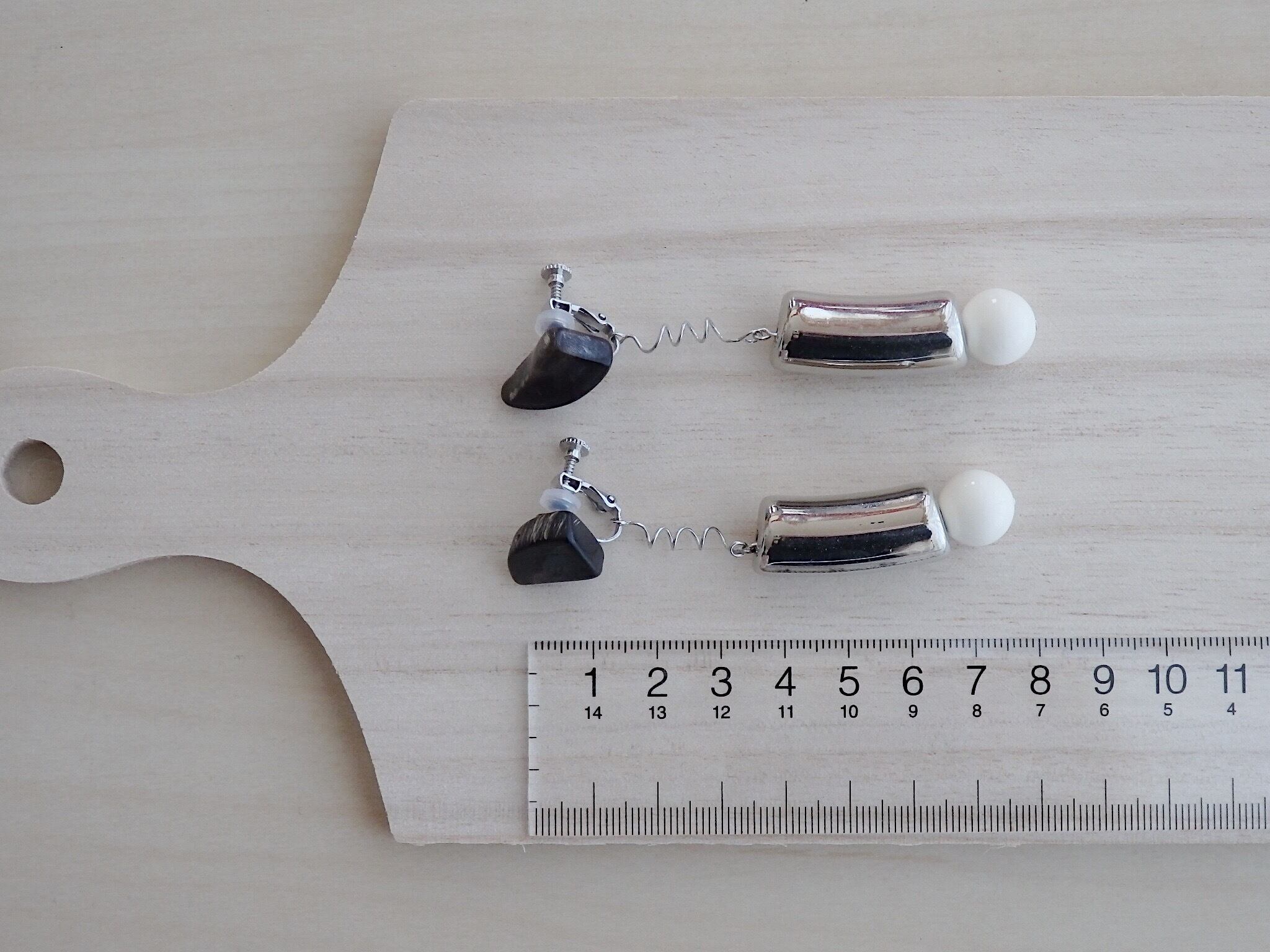 身に付けて歩くと、くるくるのパーツから下がゆらゆらと揺れて 存在感があります。シルバーチューブは一見重そうに見えますが、アクリル素材なので とても軽いです ⬚