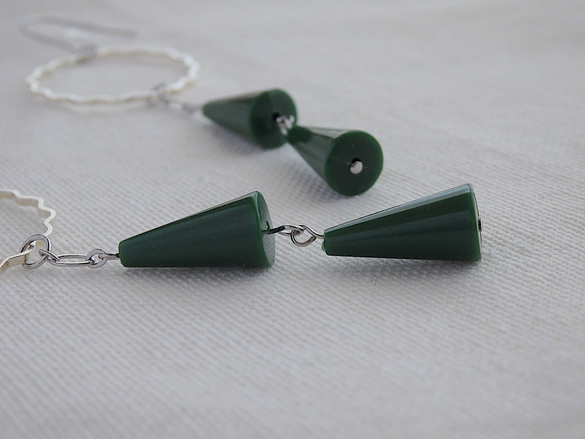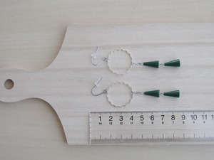 もくもくのシルバーフープと緑のコーンドロップビーズが印象的な一点ものの飾りです ⚐