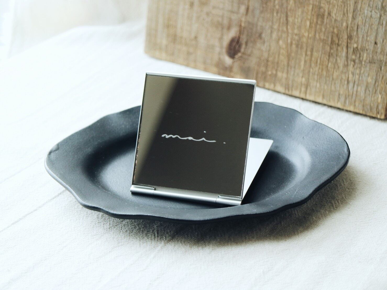 こちらは、オーダーをいただいてから 1つ1つ心を込めて名前をお彫りする、セミオーダーのコンパクトミラーです。