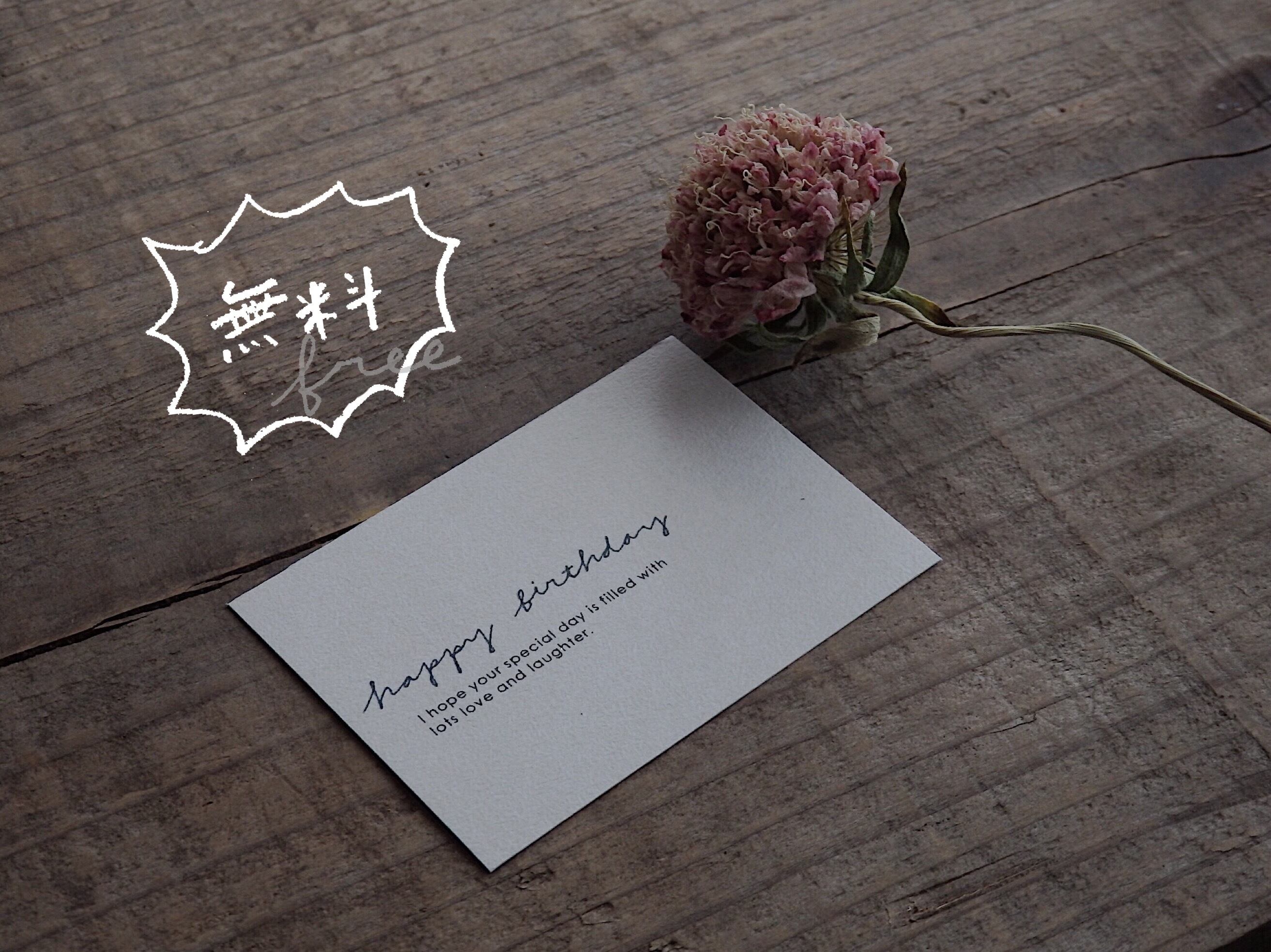 こちらは 当shopの商品をお買い上げいただいた方に 無料でお付けしています、メッセージカードの専用ページです☄︎ ● メッセージ( 5種類 ) ● カードの色( 3種類 ) を それぞれお選びいただき、ご購入される他の商品の注文時に 画面下方の茶色アイコン「 ショップに質問する 」より お知らせください ※ こちらは、メッセージカードのデザインを選択するためのページとなります。 カートにはお入れいただかないようお願いいたします。