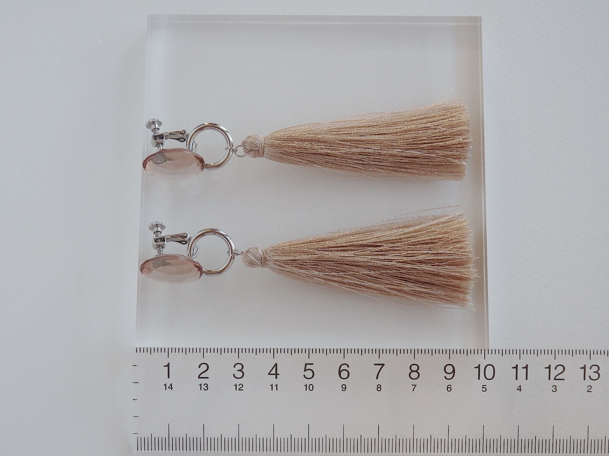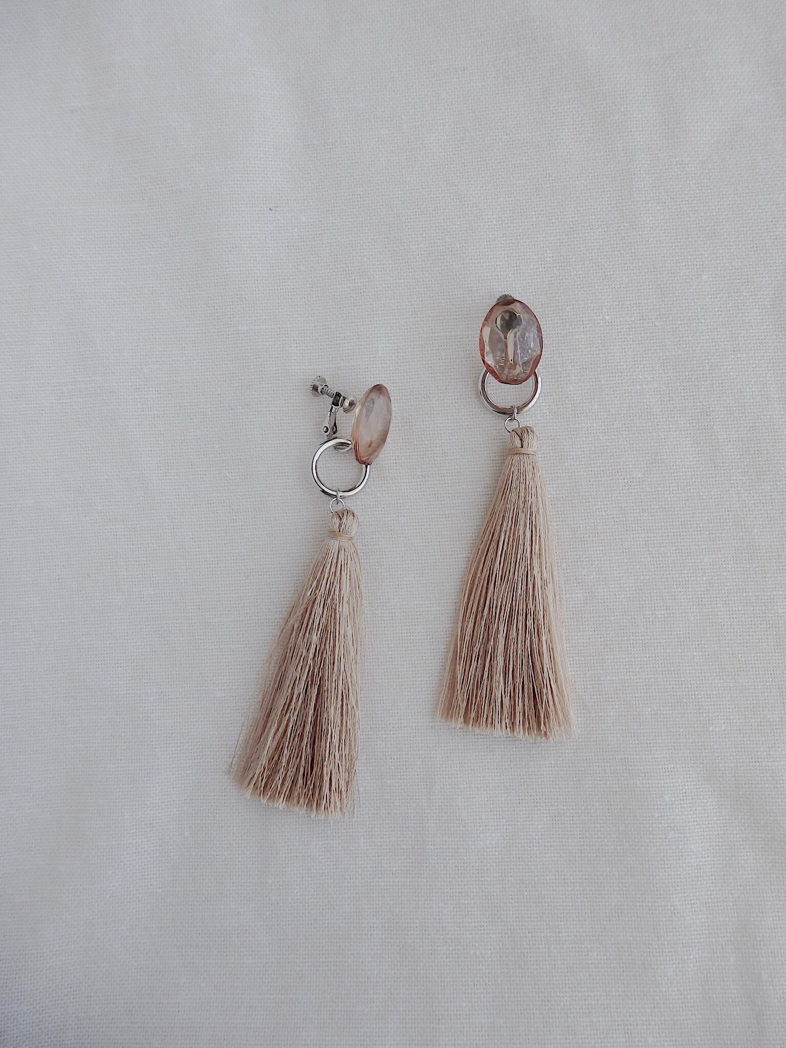 上品な艶のあるタッセルがさらさらと揺れる、夏らしいイヤリングです( ピアスに変更もできます )