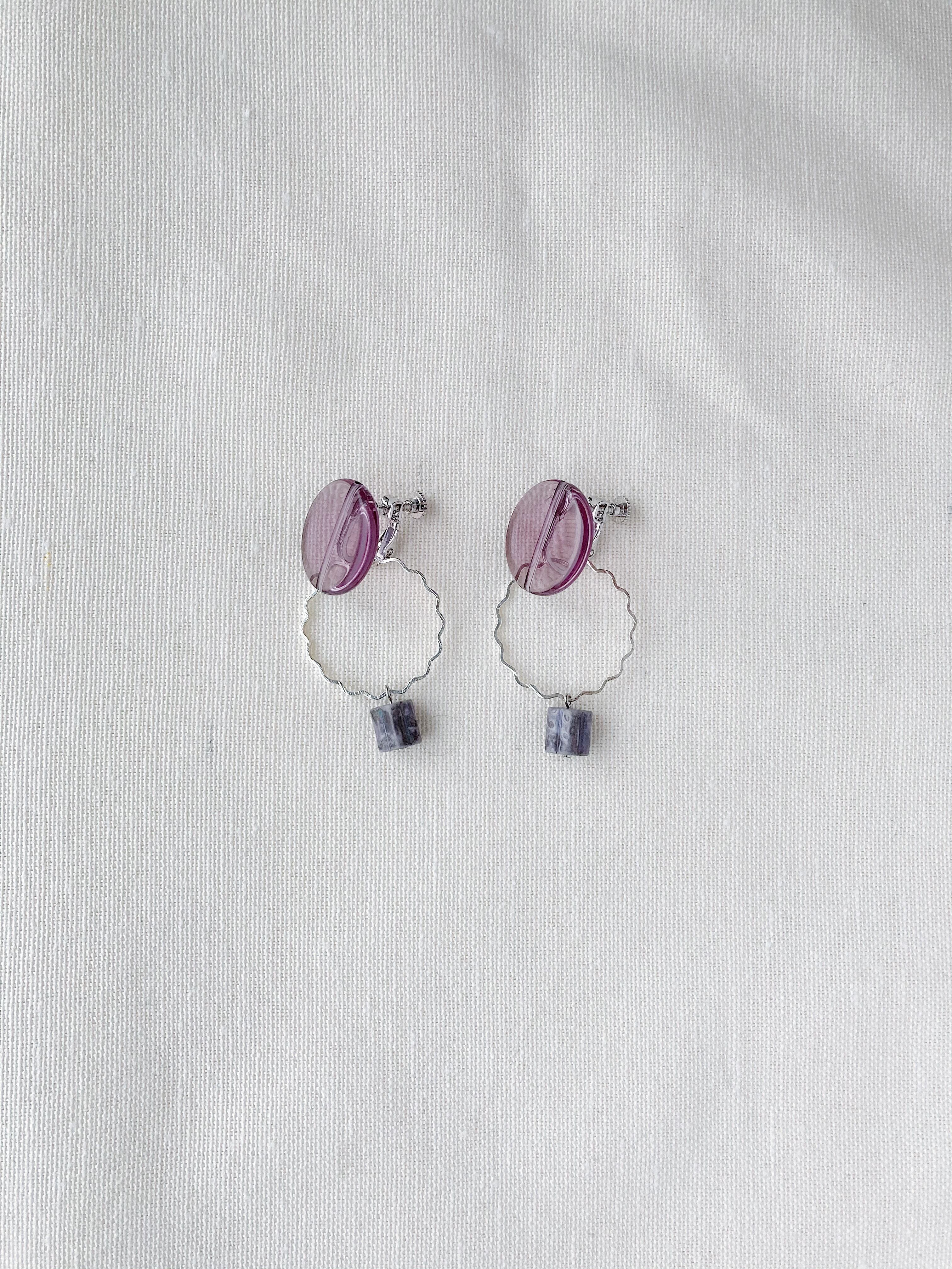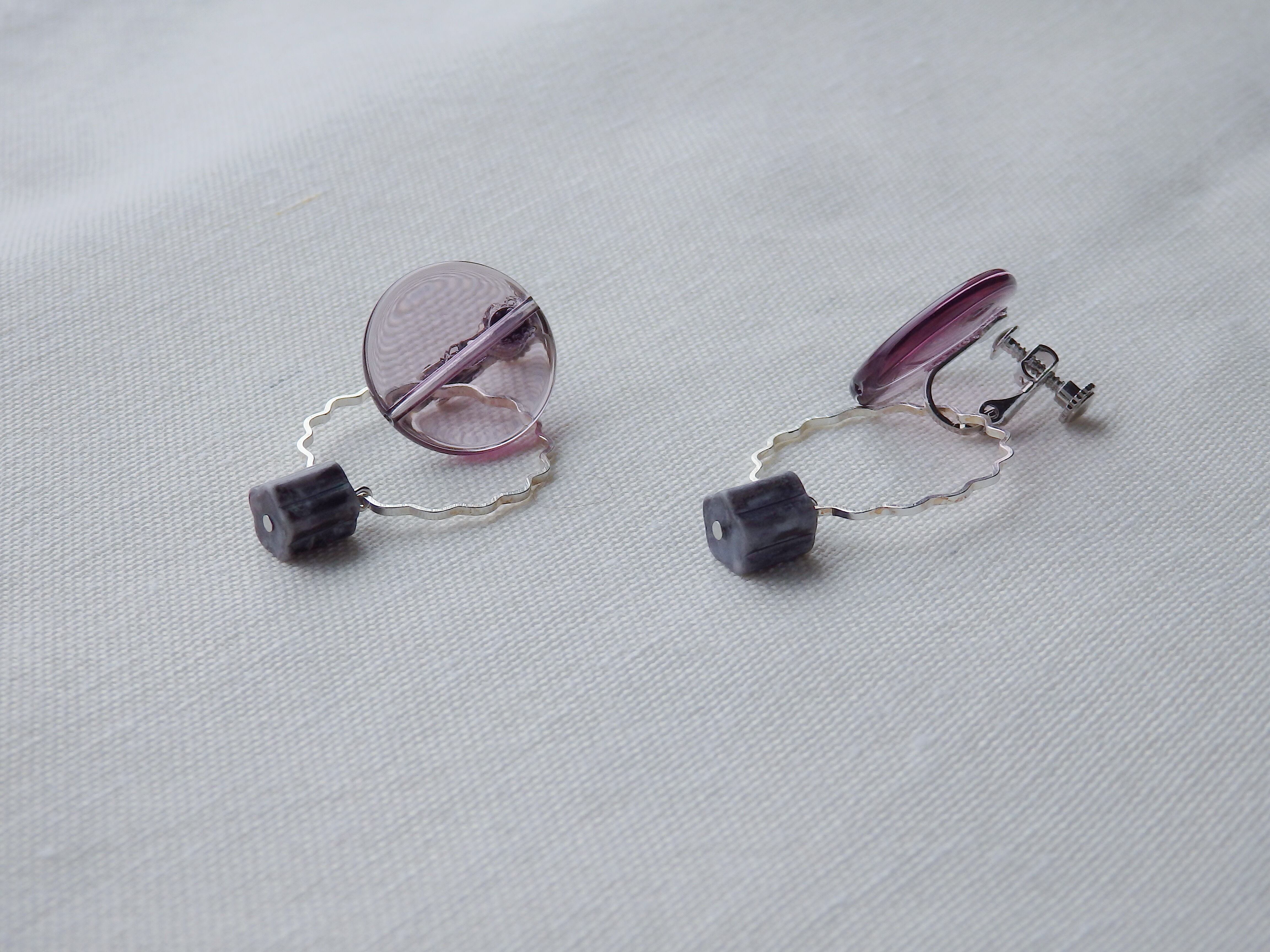 クリアな紫パーツともくもくパーツが印象的なイヤリングです。