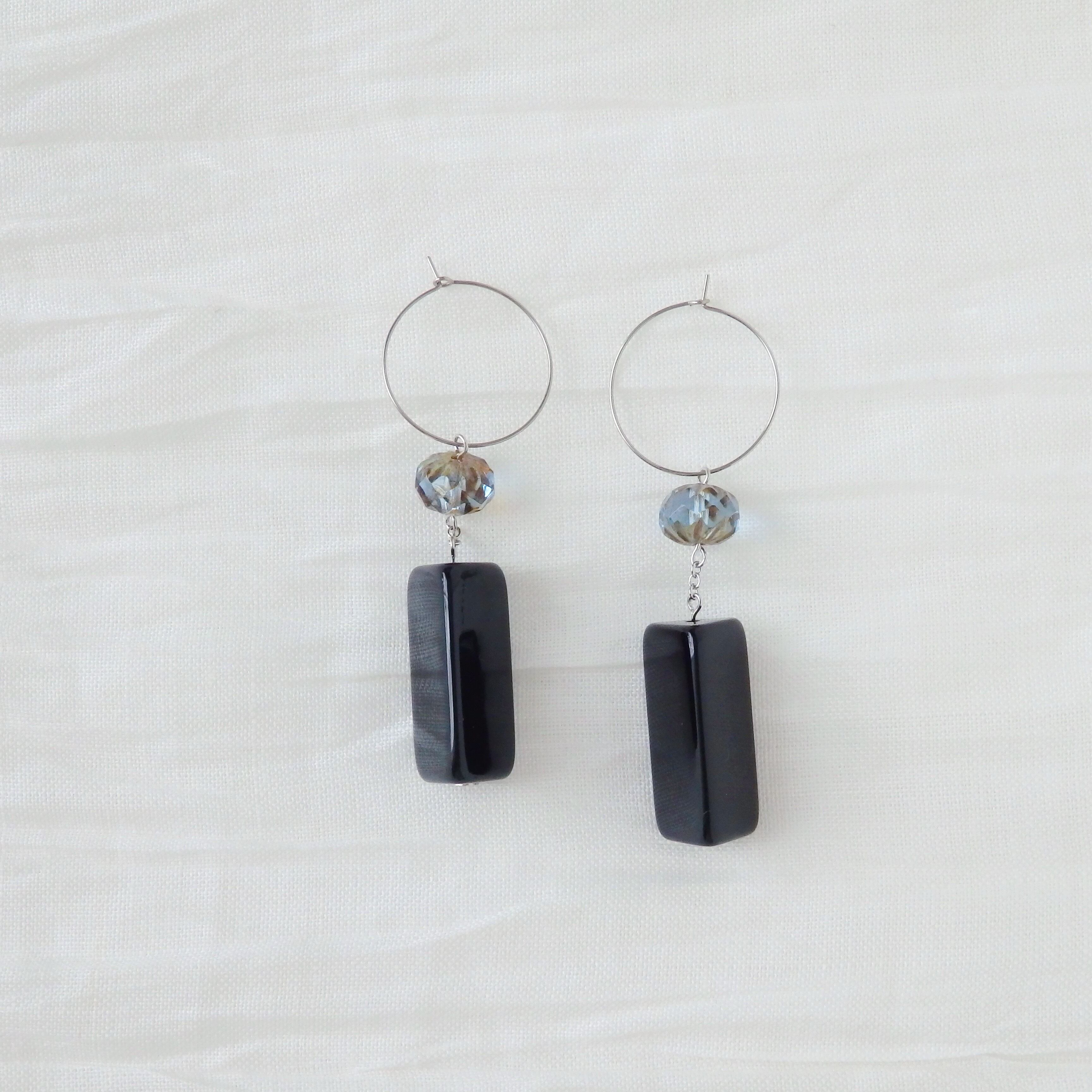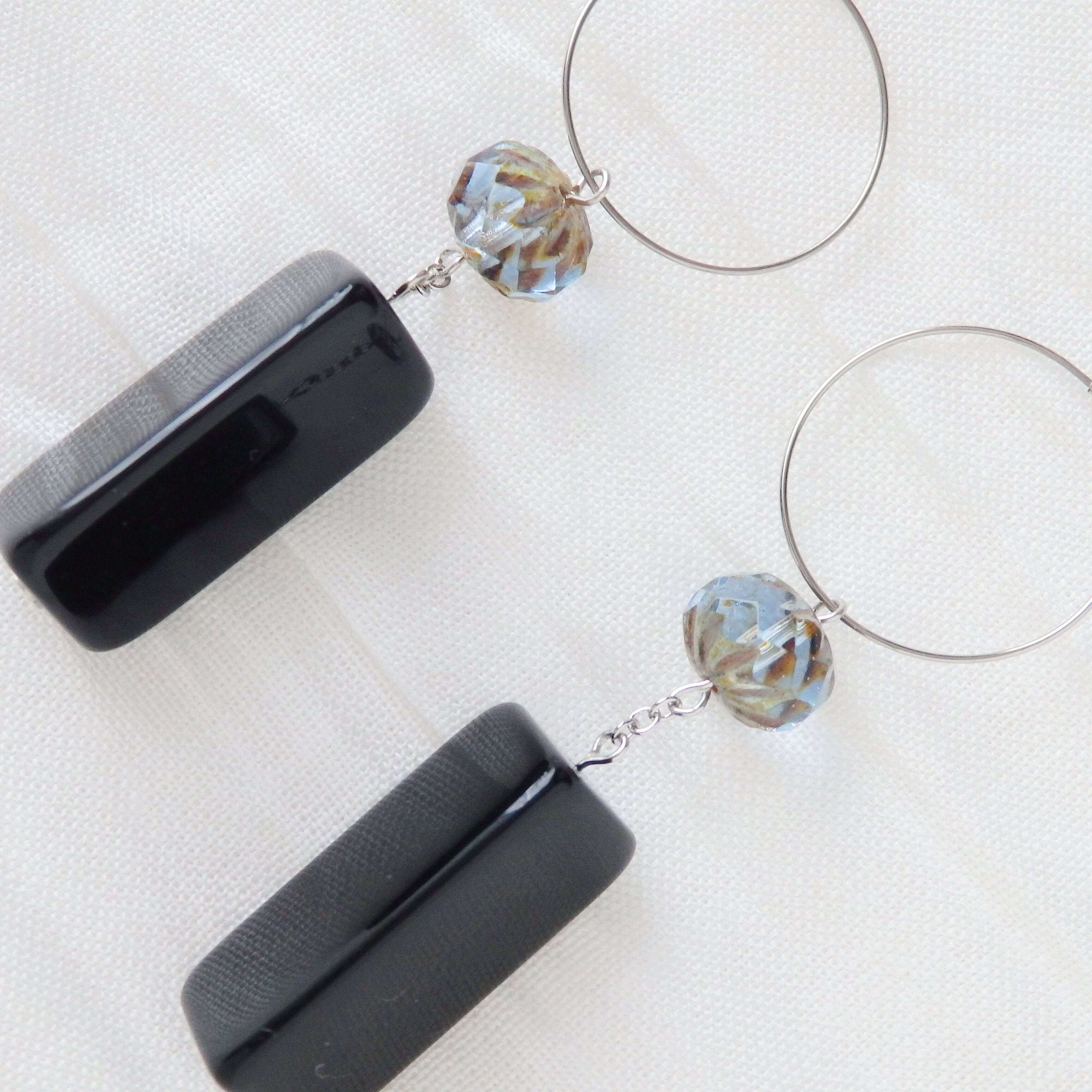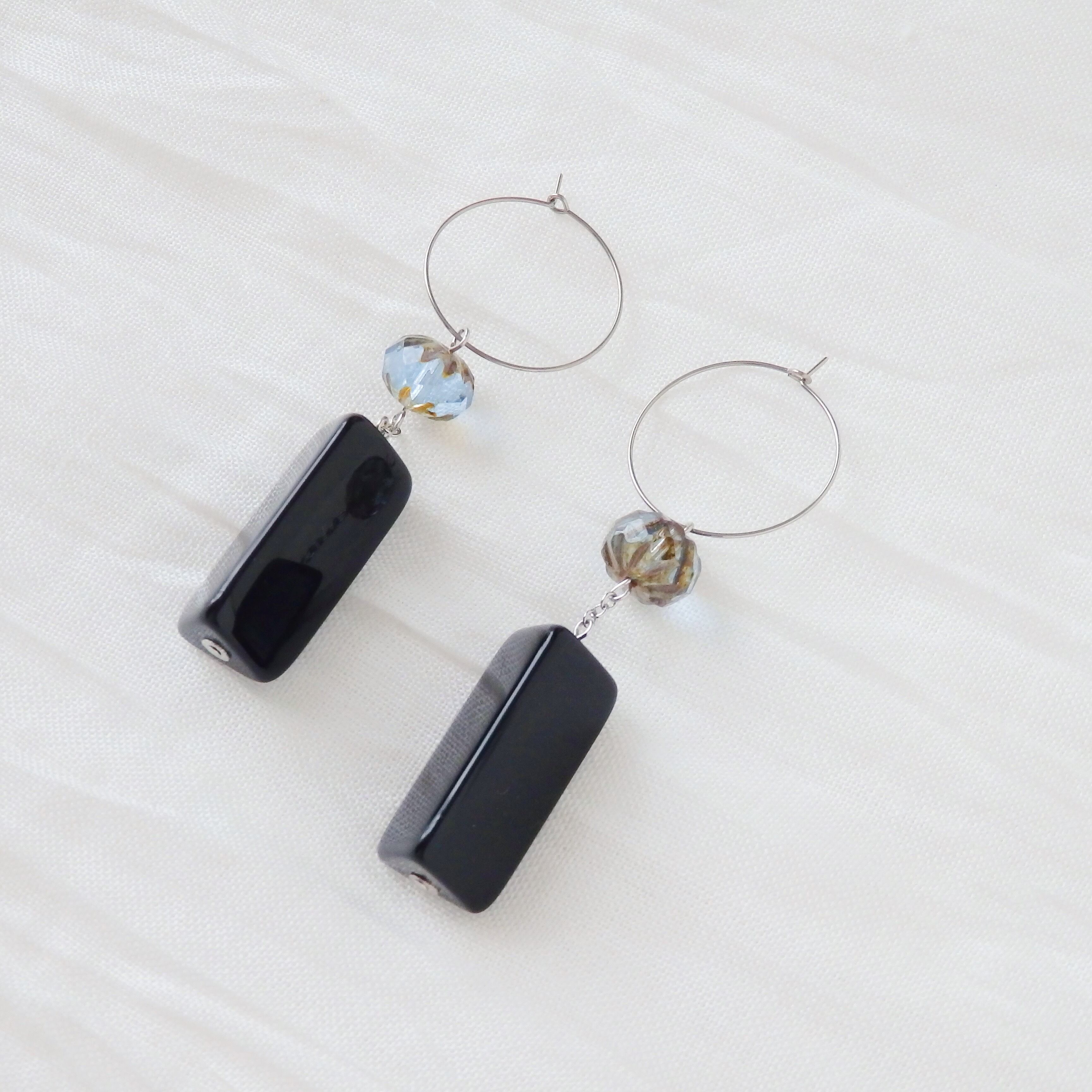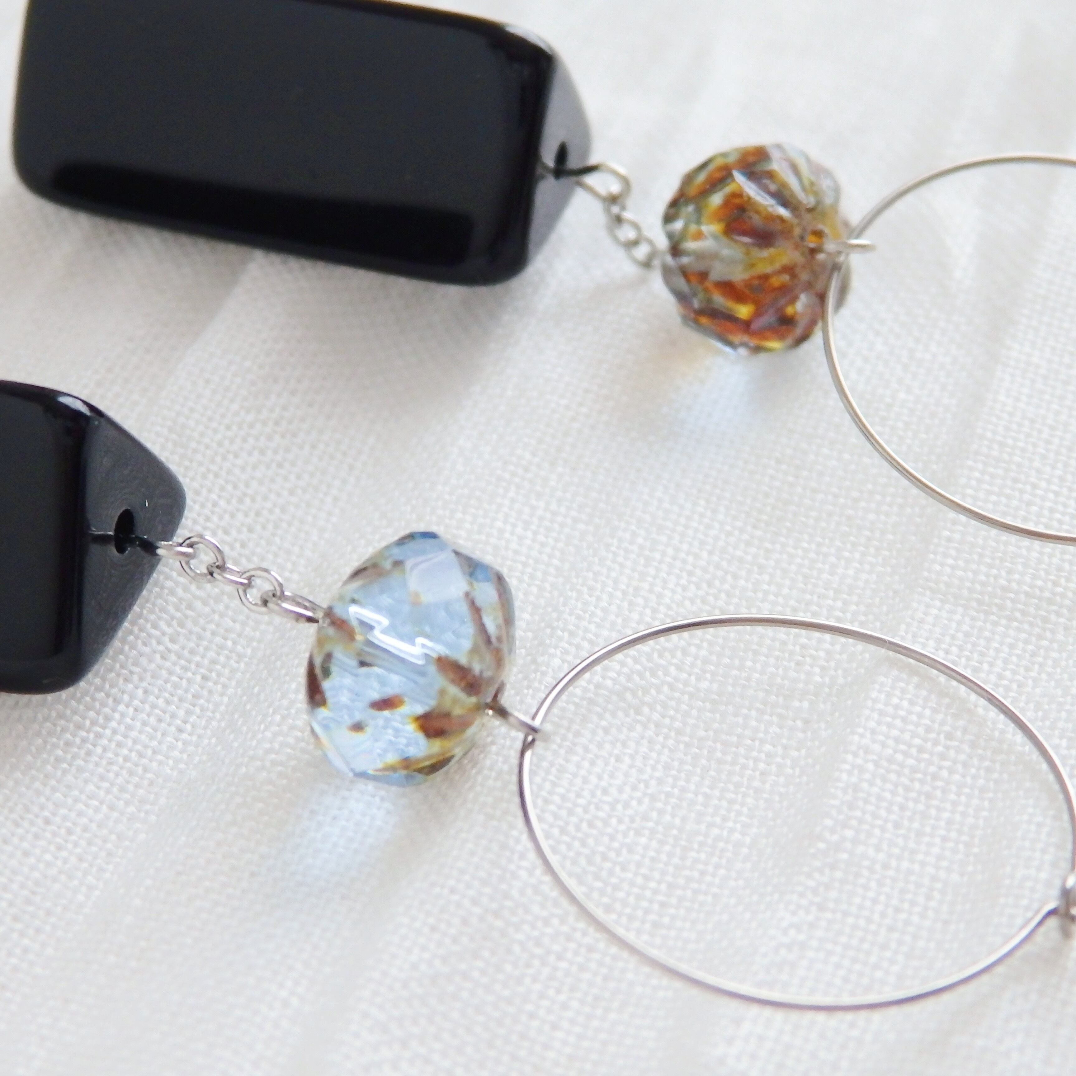 ブラック / 個性的 / チェコビーズ / フープピアス / プレゼント / ギフト / 大ぶり / 春 / 夏 / 秋 / 冬 / 金属アレルギー / 金属アレルギー対応