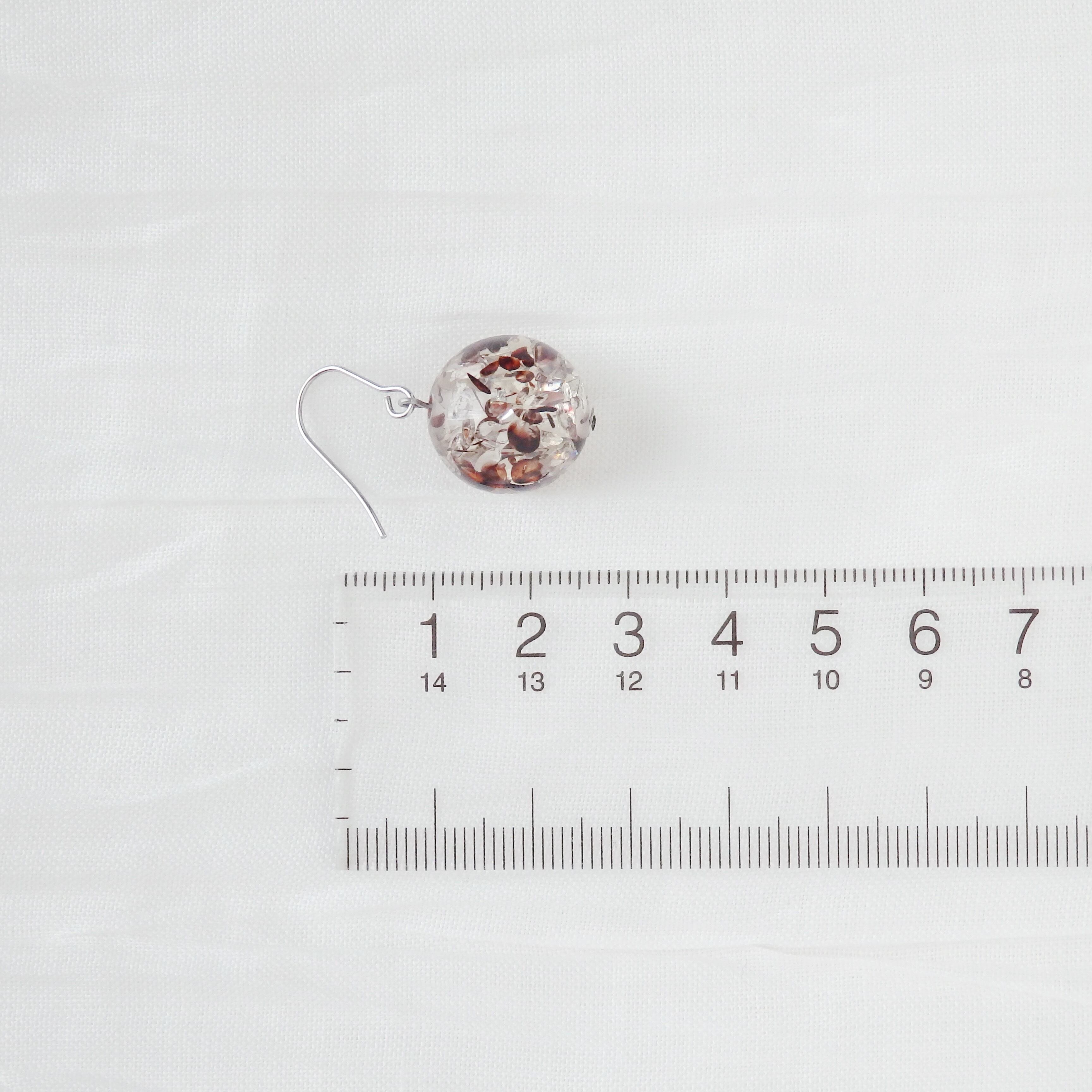 ブラウンのカットガラスのような細かなパーツが、透明の丸の中に無数に練り込まれています◌