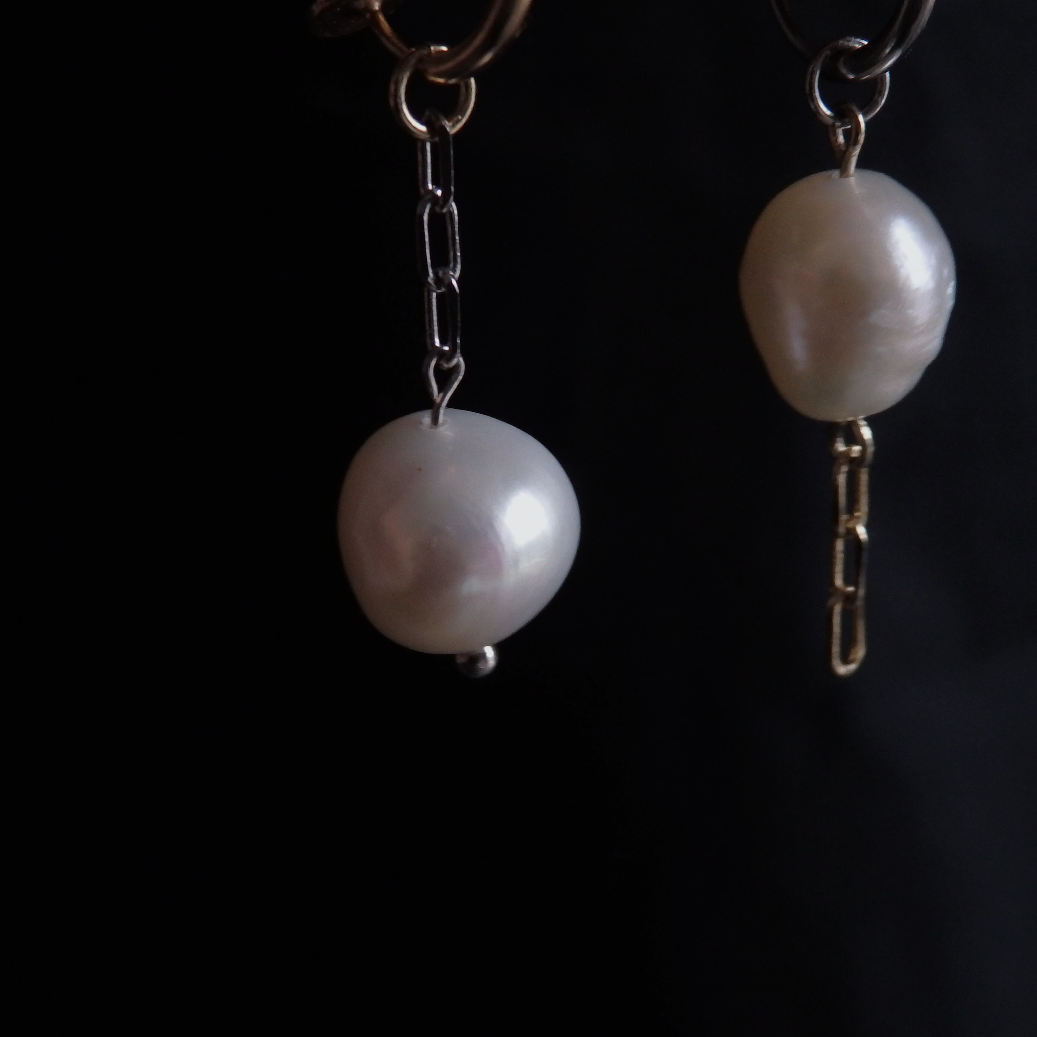 淡水パール / ゴールド / シルバー / シンプル / チェーン / フォーマル / ピアス / イヤリング / 金属アレルギー / 金属アレルギー対応
