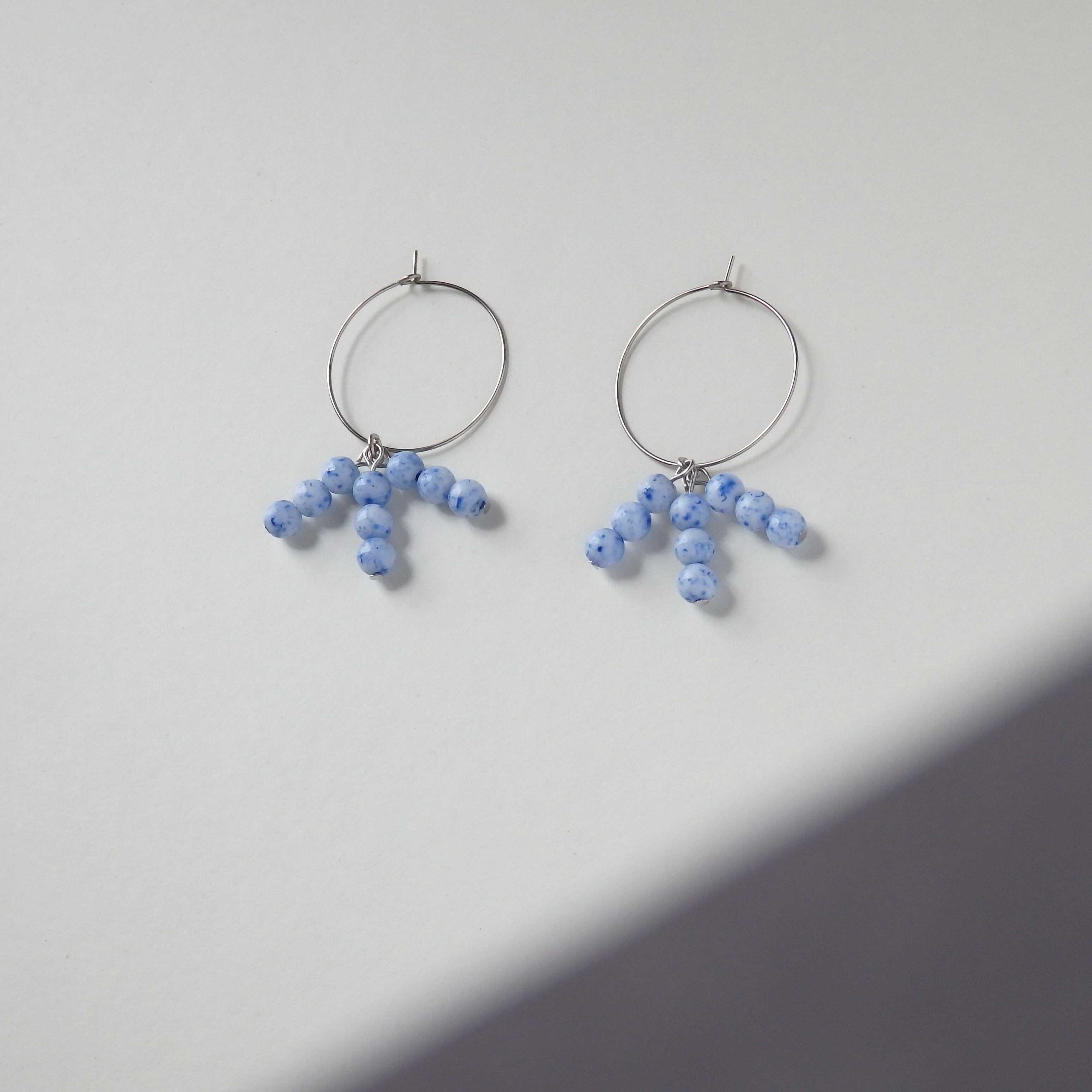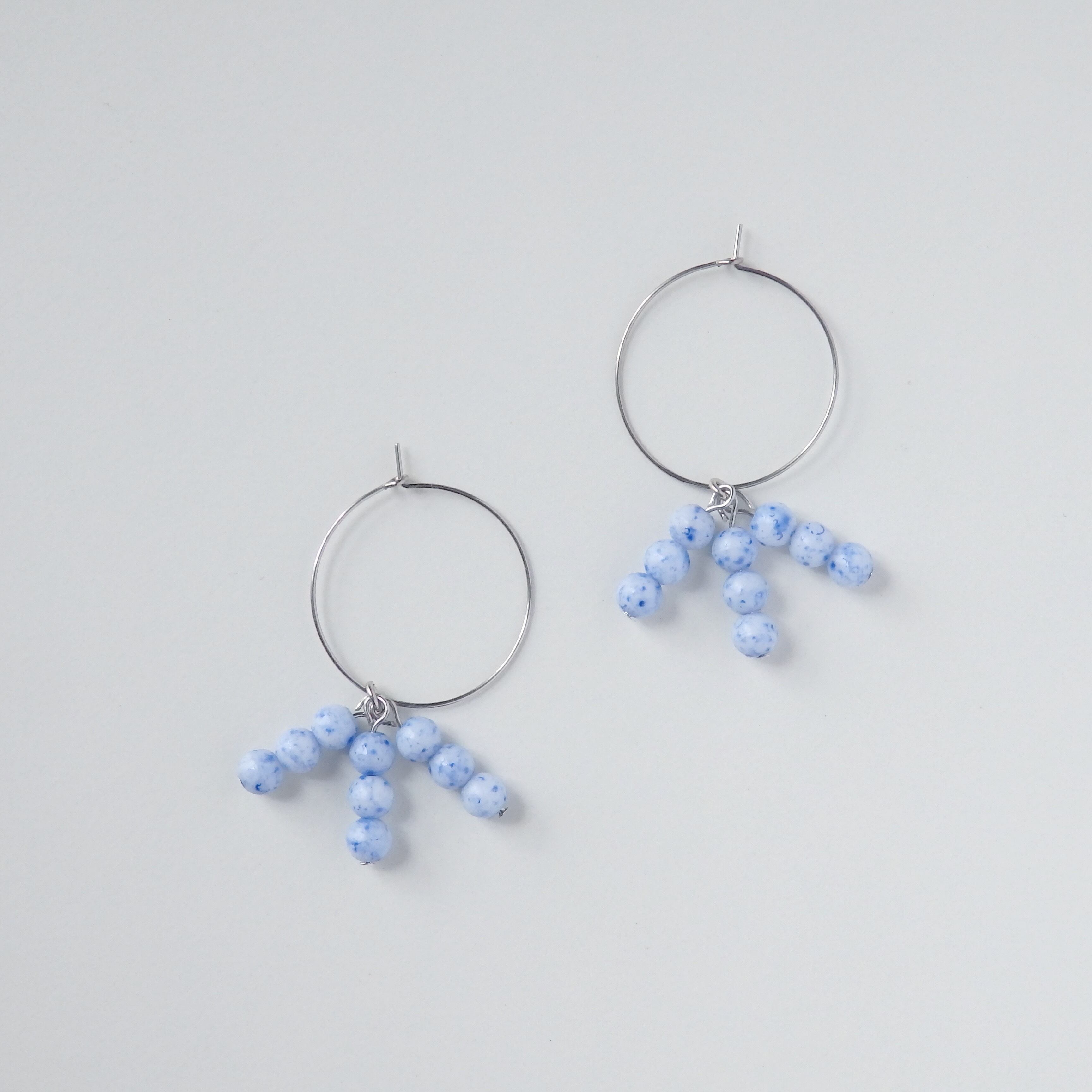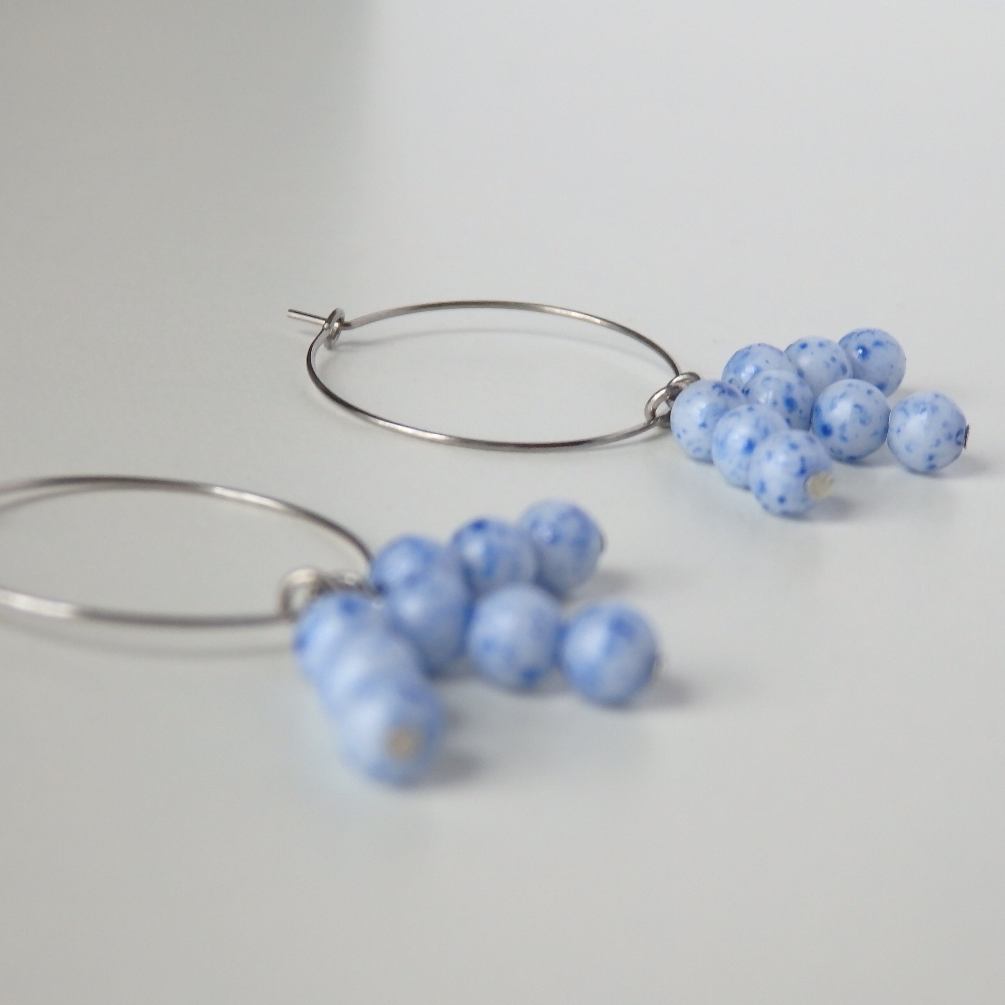 青 / マーブル / チェコビーズ / 個性的 / ピアス / イヤリング /シルバー /金属アレルギー / 金属アレルギー対応