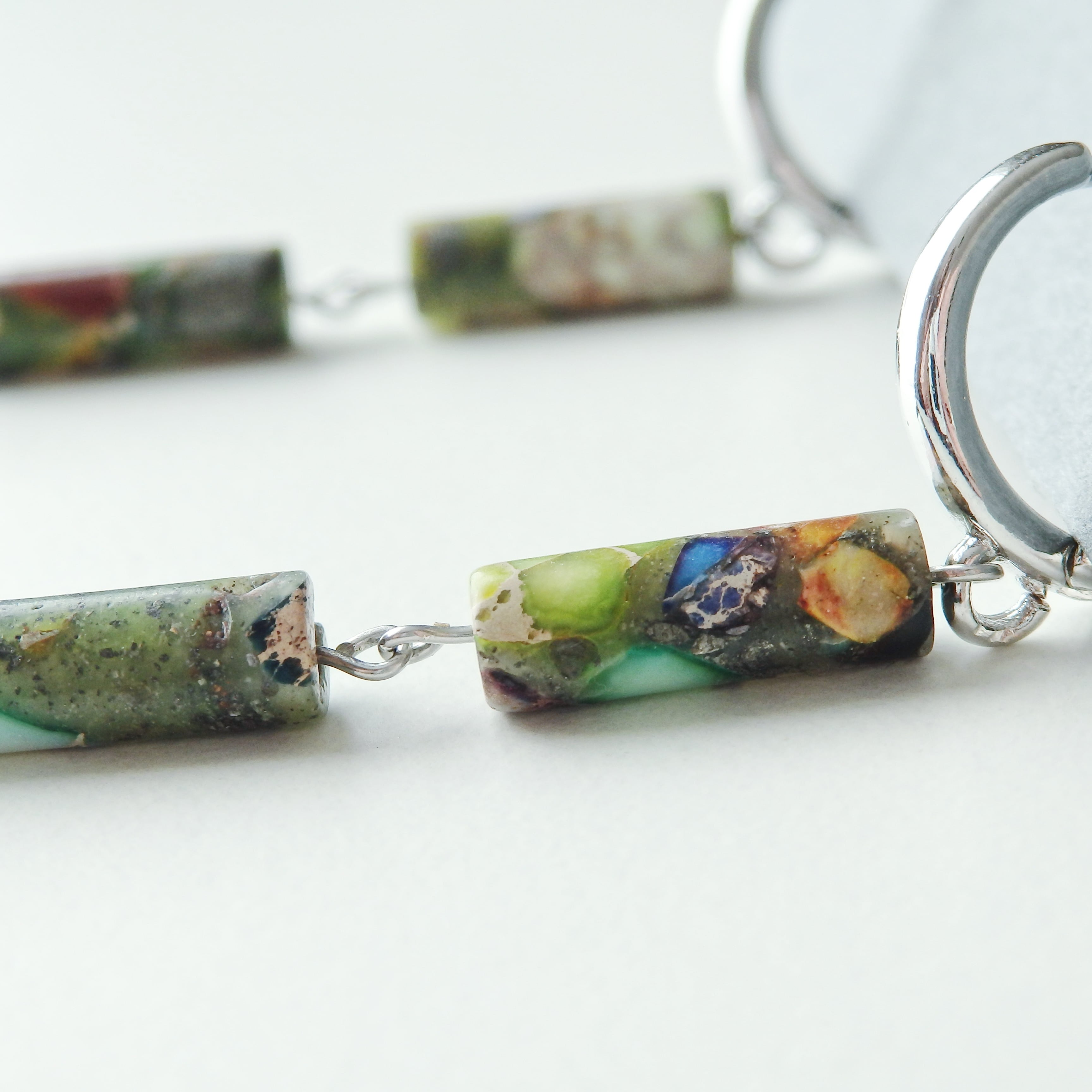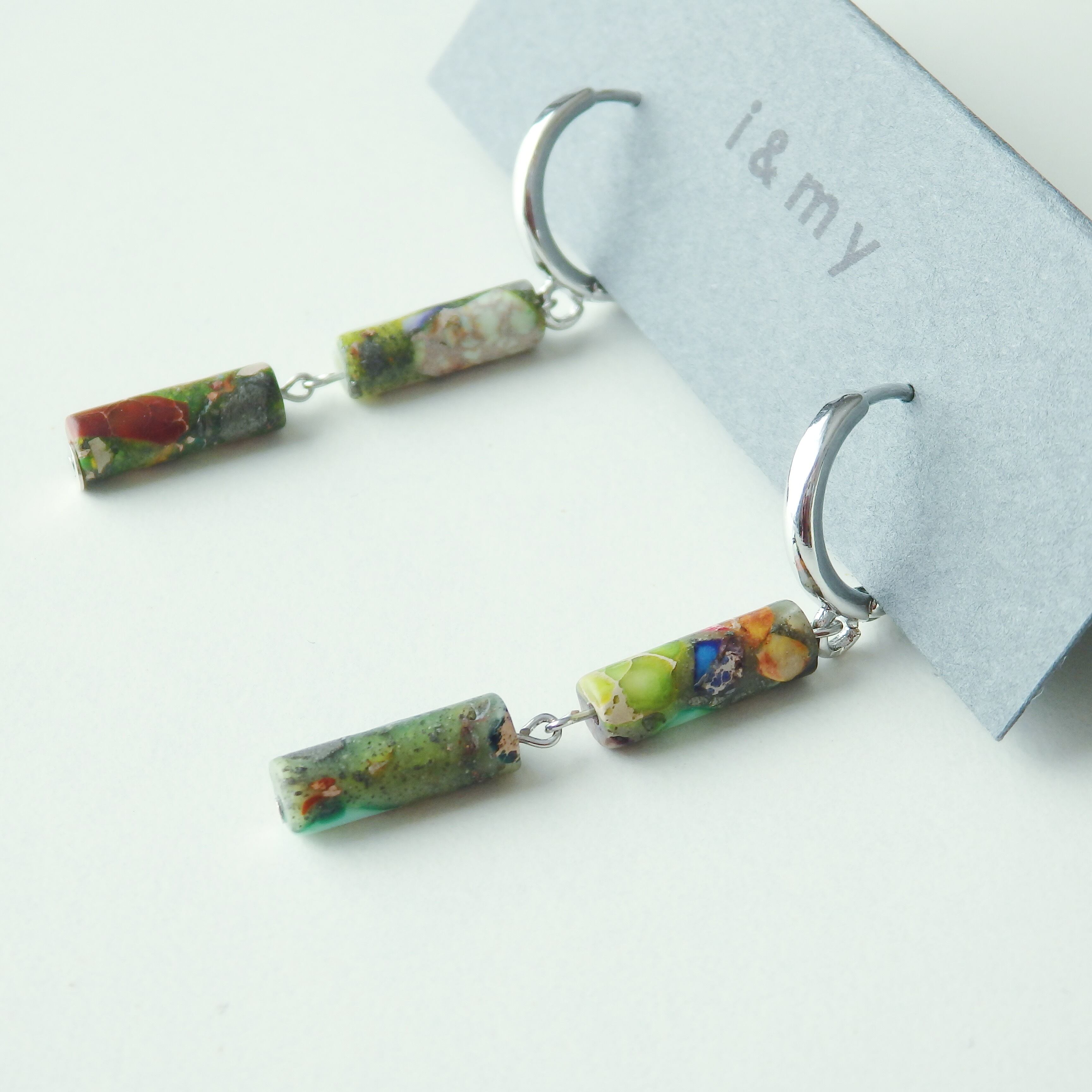 インペリアルジャスパーという天然石パーツが印象的な飾りです。