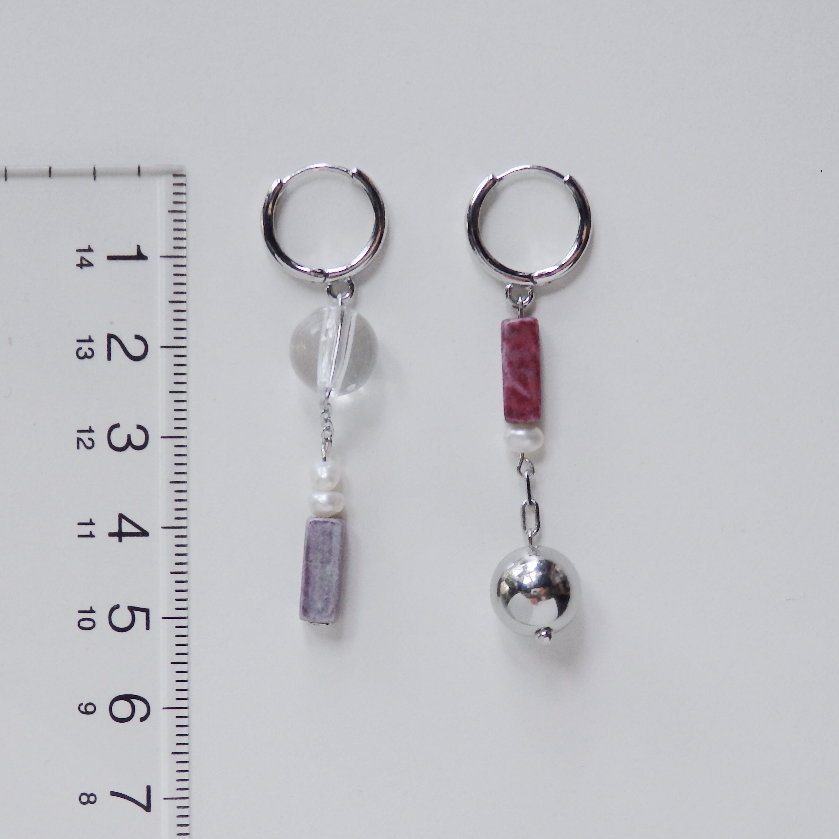 使っているのは軽いパーツばかりなので、耳への負担も少なくストレスレスなピアスです。